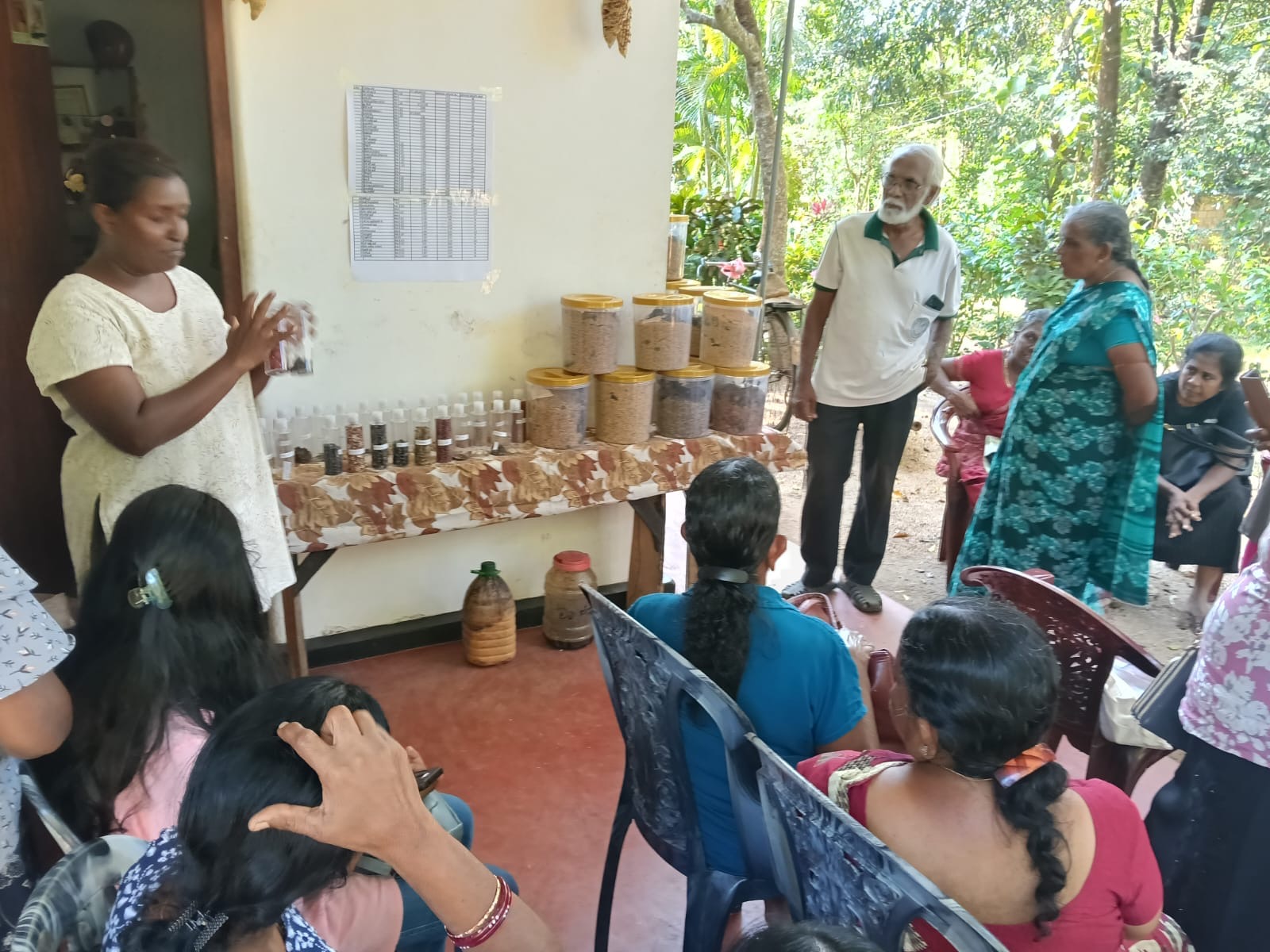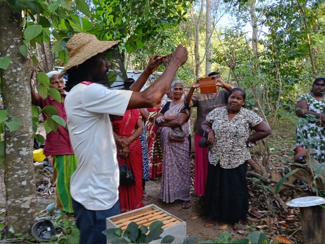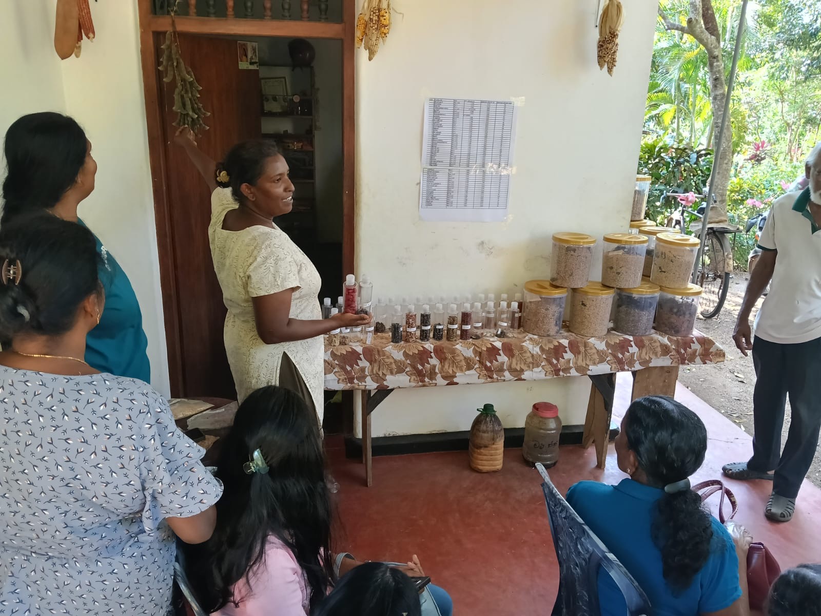 On March 22, 2026, the society conducted a training program for smallholder farmers and home gardeners from the Surya Women’s Collective of Batticaloa District in the Eastern Province. The program featured discussions on the importance of agroecology-led food systems, Traditional Ecological Knowledge (TEK), culturally appropriate healthy foods, and place-based practices. The training also included demonstrations on traditional seed conservation and beekeeping; participants received traditional seeds for sharing and multiplication.